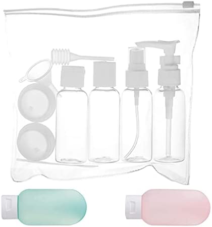 11 PCS Travel Bottles Set, Empty Plastic Travel Bottles Squeezable Clear Leak Proof Refillable Air Travel Size Liquid Containers Travel Accessories With Bag For Toiletries Lotion Shampoo Cream Makeup