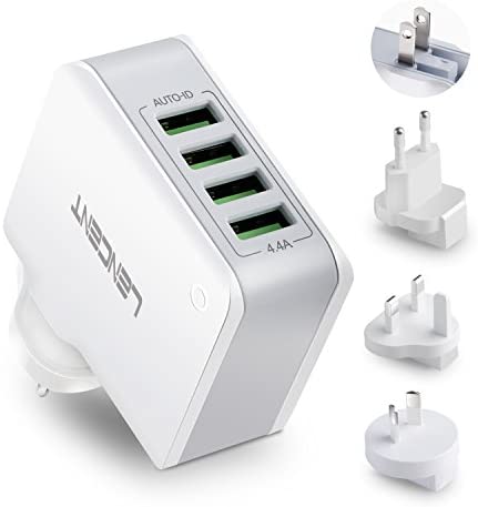 Lencent USB Charger Plug, 4-Port USB Universal Travel Adaptor Plug, 22W/5V 4.4A Wall Charger Worldwide Travel Charger Adapter for iPhone, iPad, Android, Tablets and More