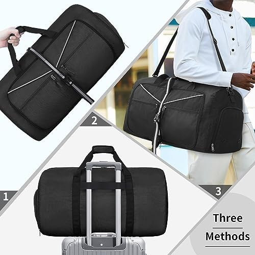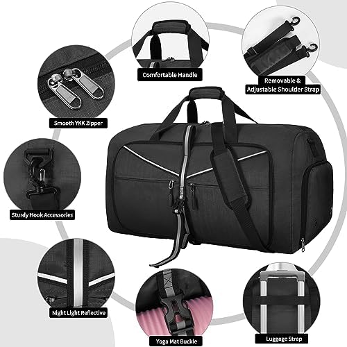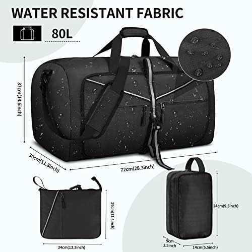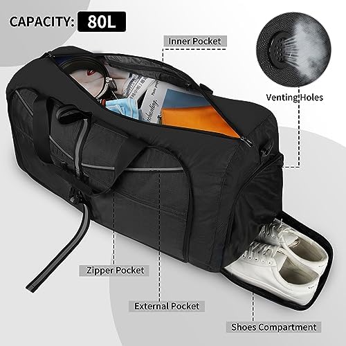 Lubardy Travel Duffle Bag for Men Sports Gym Bag Foldable Large Weekend Overnight Bag Women with Shoes Compartment Water Resistant Holdall Bag 80L Black
