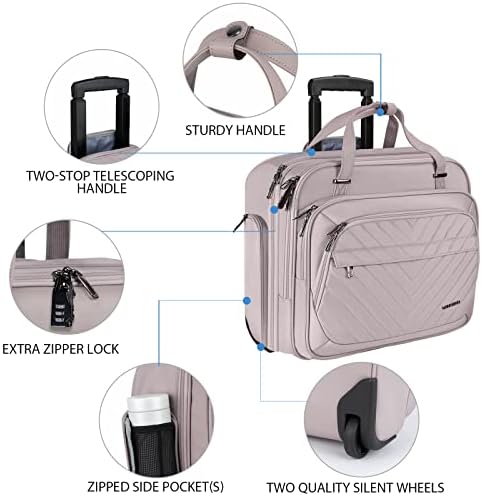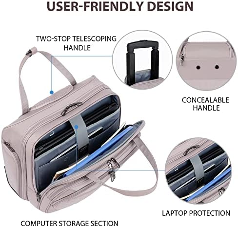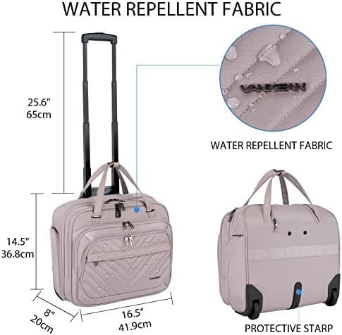 VANKEAN Rolling Laptop Case for Women, Premium Rolling Travel Luggage Bag Fits Up to 15.6 Inch Laptop Carry on Briefcase Water-Proof Overnight Rolling Computer Bags with RFID Pockets