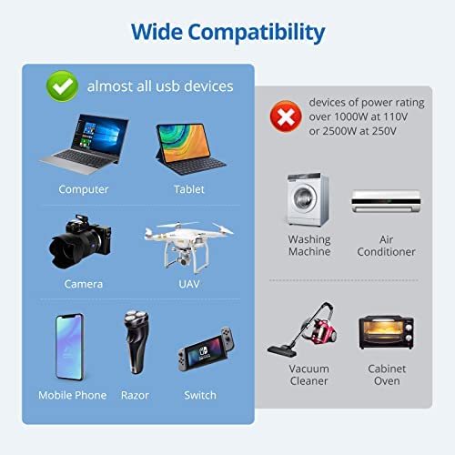 ⭐【Applicable Multiple Devices】Compatible with all USB Devices like iPhone 13/12/X/8/7/6, Samsung S8/S7, XiaoMi Mix2, HUAWEI Mate 10, MeiZu, laptop, Tablet, Digital Cameras, shaver and so on. Worry-free travelling in USA, UK, Europe, Canada, Japan, Mexico, Asia, the Middle East, and more.