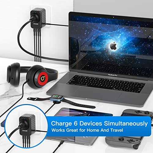 ⭐【Travel Essential Adapter】 Zendure Passport II Pro is an all in one world multi function Travel Adapter which covers more than 200 countries with US/EU/AU/UK plugs, the 61 watts PD GaN quick charge adapter charges 6 devices at once, solution for your worldwide traveling.