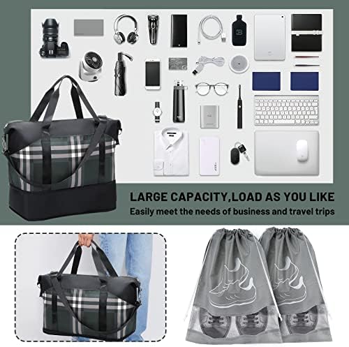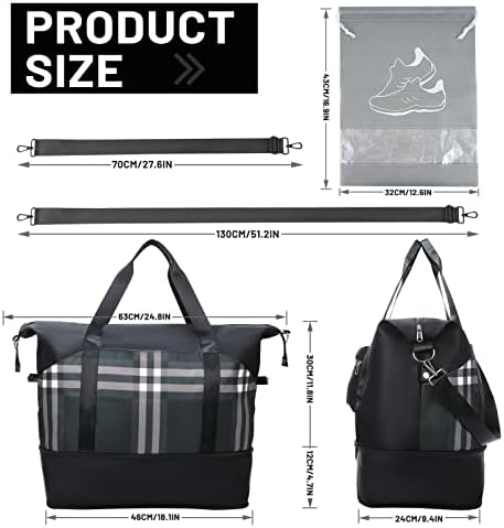 Travel Duffel Bag Sports Tote Gym Bag with 2 Shoe Bags Shoulder Weekender Overnight Bags
